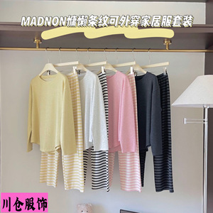 MADNONO慵懒条纹可外穿家居服套装女士宽松休闲舒适长袖长裤睡衣