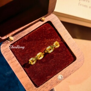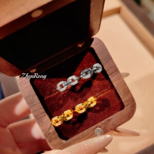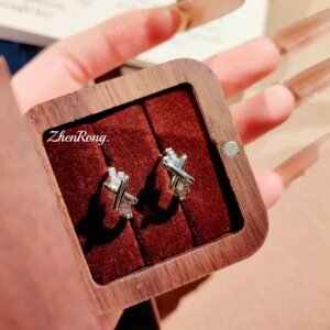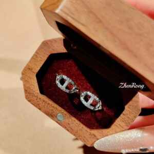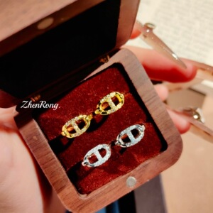 尚美镶钻交叉X耳扣轻奢微镶H猪鼻子耳环金色链条双环锁扣耳钉女