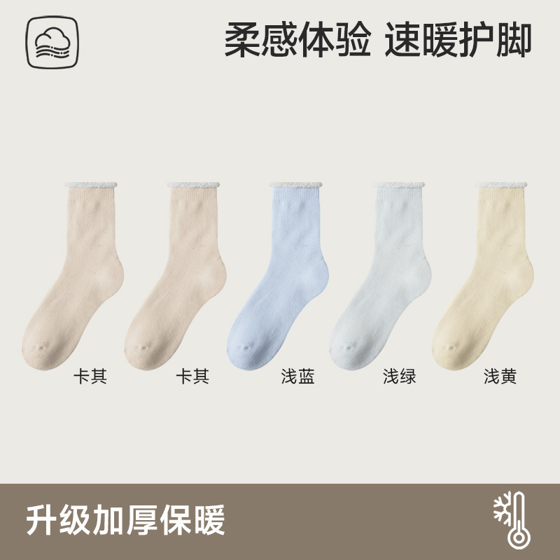袜子女舒适加厚保暖抗寒秋冬款内里全毛绒发热保暖女士拉绒中筒袜