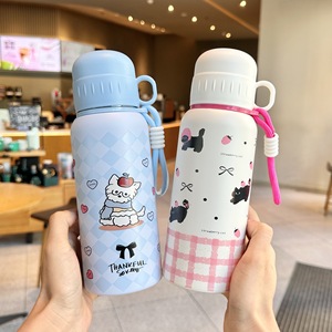 创意便携316水杯可爱大容量ins杯子不锈钢高颜值儿童学生双饮吸管