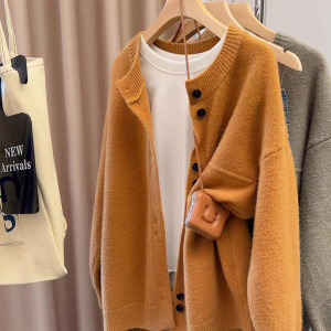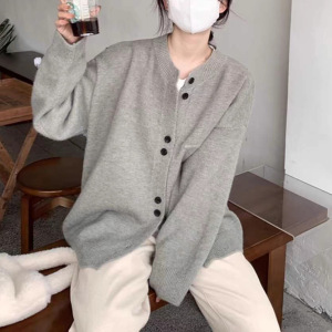 灰色宽松慵懒风日系针织开衫女秋冬软糯小香风毛衣外套设计感上衣