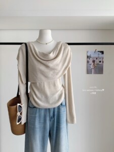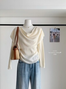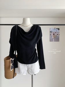 韩系温柔气质氛围感针织衫上衣+荡领披肩两件套女2025秋季套装