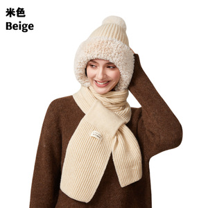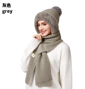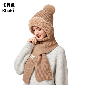 跨境欧美工厂批发加厚加绒帽子女围脖口罩连体帽冬天保暖针织帽子
