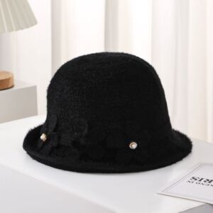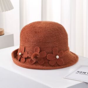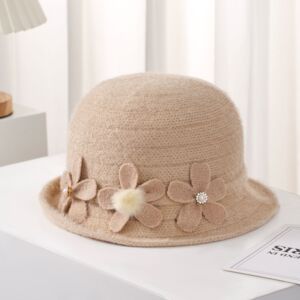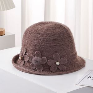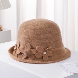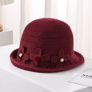 中老年人帽子女士针织礼帽秋冬复古盆帽花朵保暖百搭渔夫帽妈妈帽