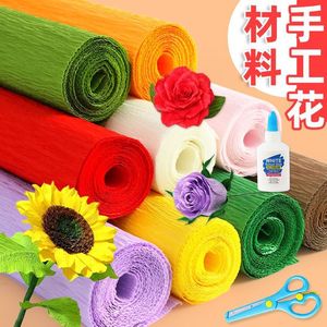 皱纹纸手工花材料褶皱纸彩色加厚纸艺花幼儿园手揉白色花艺邹纹纸