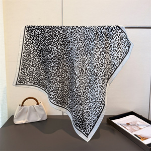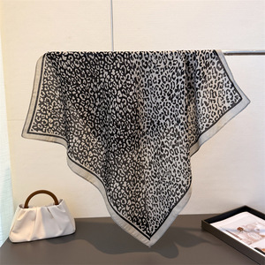 拼色豹纹人字纹棉麻感小方巾丝巾仿丝绒头巾披肩防晒围脖女士围巾