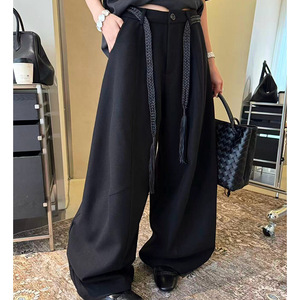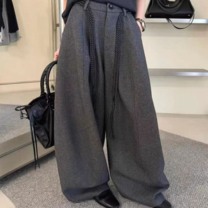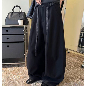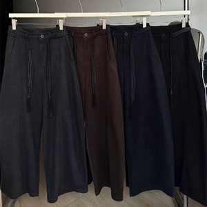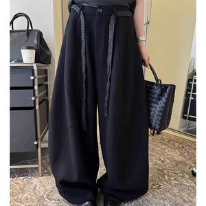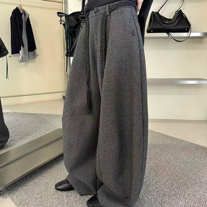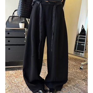 十三行2025秋季新款时尚休闲百搭裤毛呢弯刀裤长裤配腰带女