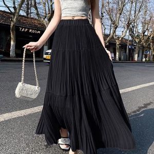 韩范紫色压褶半身裙女2025春秋新款高腰显瘦a字遮胯大摆百褶长裙
