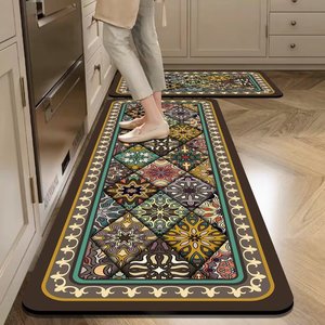 中式厨房地垫防水防油防滑免洗耐脏可擦可裁剪地毯pvc长条脚垫子