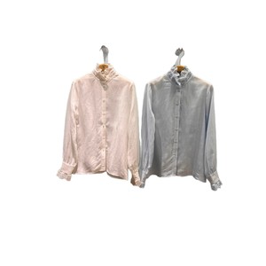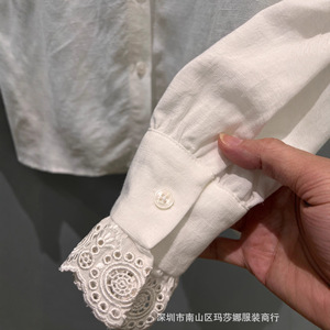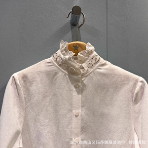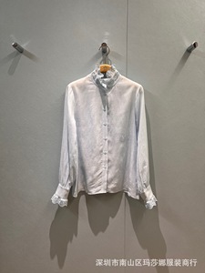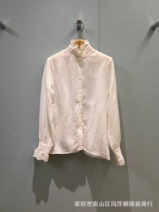 法式高端2025早秋新款简约气质字母次序花边立领亚麻宽松衬衫女