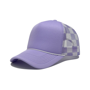跨境新款格子棒球帽带绳卡车网帽户外休闲美式时尚透气防晒广告帽