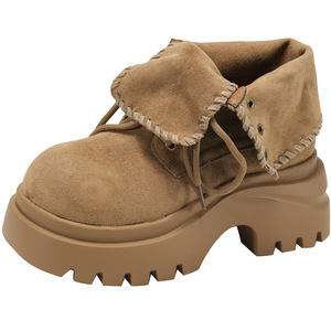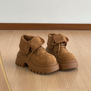 美拉德复古棕色厚底马丁靴女款2025新款秋季小个子增高显瘦短靴子