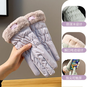 跨境新款秋冬季时尚保暖手套加绒开车可触屏防滑防水水晶绒手套