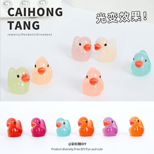 立体卡通夜光可爱光变小鸭子 diy树脂饰品配件发饰钥匙扣手机壳