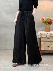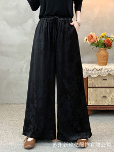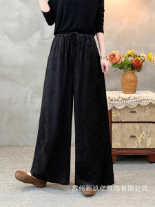 2025秋季新款新中式提花缎面阔腿裤女民族风复古时尚宽松休闲裤子