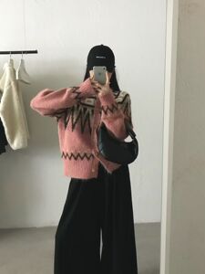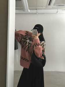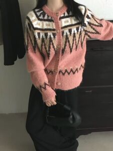 2025秋冬季费尔岛提花针织开衫毛衣女韩国小众宽松叠搭外套上衣