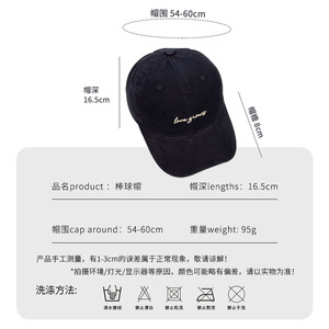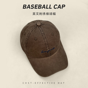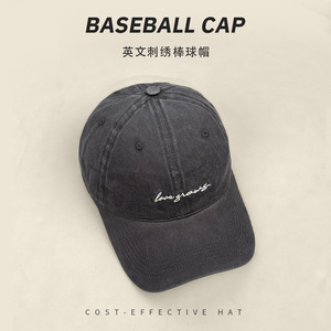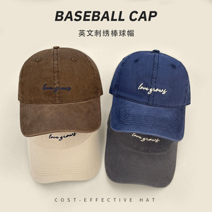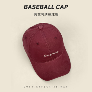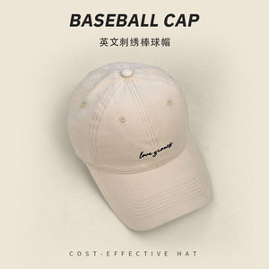 美式复古显脸小字母刺绣棒球帽子女春夏日系简约百搭大头围鸭舌帽