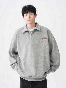 简约休闲POLO领长袖卫衣女春秋新款宽松显瘦美式复古白灰色上衣潮