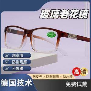 新款水晶玻璃老花眼镜男中老年高清护目老花镜耐磨水晶玻璃花镜
