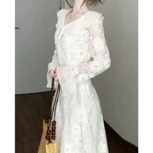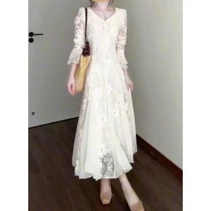法式小资漂亮独特蕾丝连衣裙女秋高级感轻奢气质收腰礼服裙长裙子