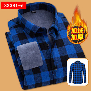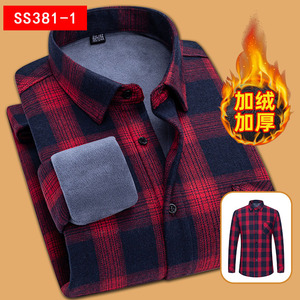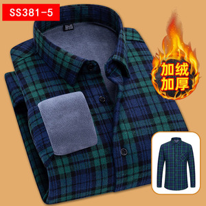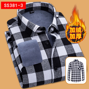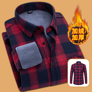 秋冬款加绒衬衫男士长袖格子秋冬季加厚中年爸爸休闲宽松保暖衬衣