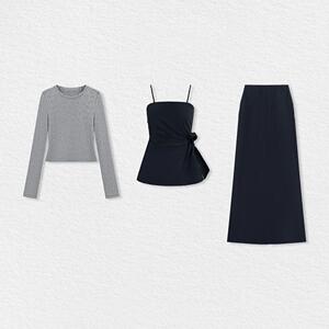 【2025年宝藏新款】秋季设计感小众显瘦简约上衣~吊带~半裙套装