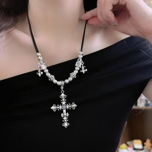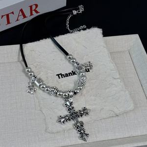 美式嘻哈风克克十字花项链女辣妹小众设计锁骨链高级感毛衣链配饰