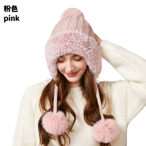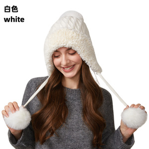 跨境欧美秋冬季女士套头帽毛球可爱加绒加厚防寒护耳保暖针织帽子