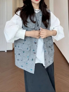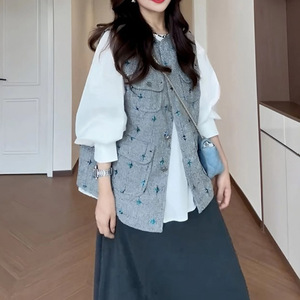 大码女装设计感小香风无袖马甲开衫早秋新款胖mm显瘦外穿马夹上衣