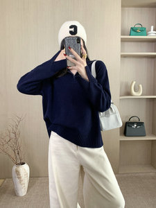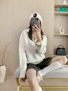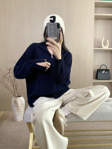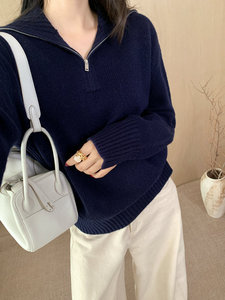 2025秋冬新款女半拉链翻领羊毛衫毛衣慵懒风简约宽松长袖针织衫
