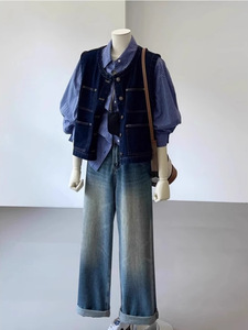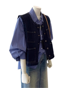 2025年新款秋圆领无袖明线水洗牛仔马夹女叠穿坎肩无袖外套马甲