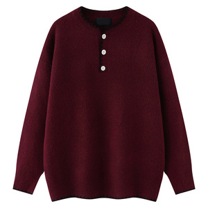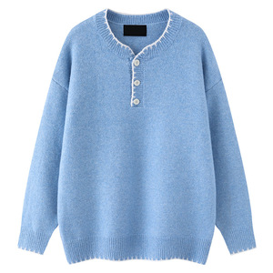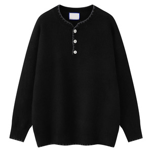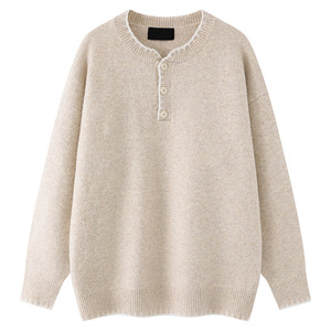 【广州衣品】美式复古高智感亨利领毛衣男女慵懒感中性宽松针织衫