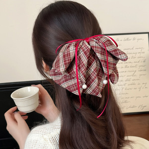 学院风格纹蝴蝶结马尾夹女韩系半扎发抓夹轻奢美拉德时尚发夹头饰