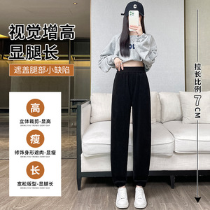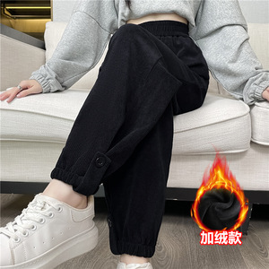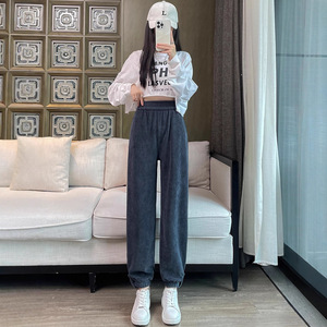 加绒加厚运动裤女秋冬季大码雪尼尔高腰束脚显瘦休闲哈伦萝卜长裤
