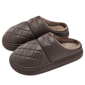 防水棉拖鞋女秋冬季2025新款家居保暖舒适厚底抗菌皮面棉鞋男外穿