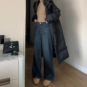 直筒牛仔裤女秋新款窄版阔腿裤小个子大码胖mm梨形身材显瘦裤子