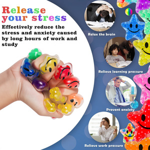 跨境tpr笑脸五角星水珠球解压捏捏乐彩珠葡萄球发泄球减压泡大珠
