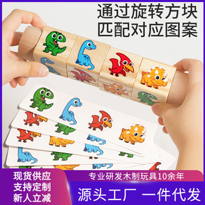 跨境木制幼儿童卡通旋转积木方块认知拼图抓握积木益智力早教玩具