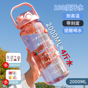 容量水杯带吸管刻度2000ml运动军训耐高温水壶男女便携塑料杯