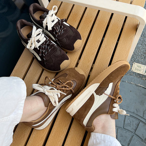 真皮德训鞋女2025秋冬新款复古厚底运动阿甘鞋百搭鞋子女户外女鞋