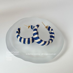4cm银针毛线编织C形耳环秋冬款清新甜美气质耳钉时尚小众设计耳饰