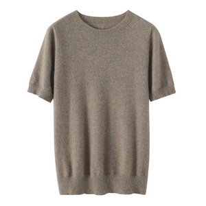 气质休闲女短袖圆领套头短款纯色打底中袖毛衣宽松半袖针织上衣