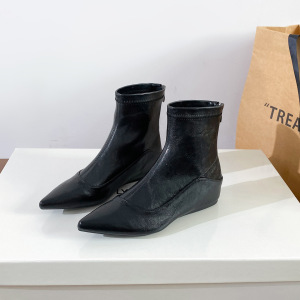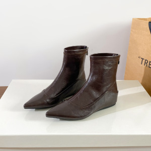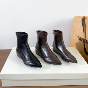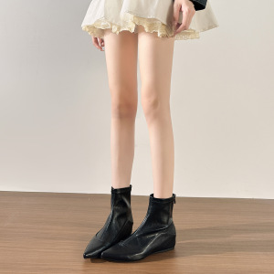 内增高骑士靴2025秋冬季新款简约瘦瘦靴法式尖头平底短靴女马丁靴