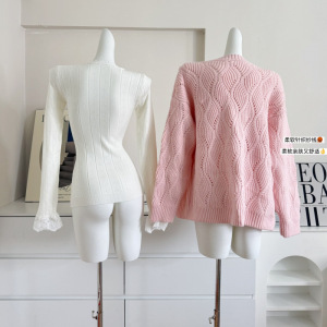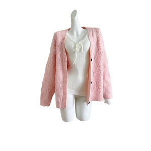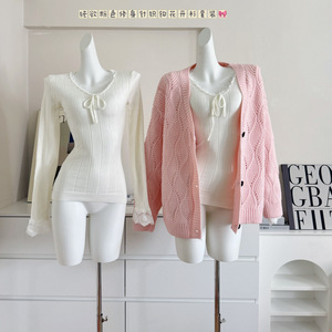 塞纳针织开衫女韩系早秋穿搭上衣外搭氛围感粉色慵懒风毛衣外套