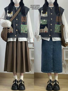 开春套装女新款小个子盐系马甲背心衬衫上衣两件套学院风显瘦穿搭