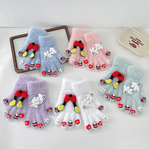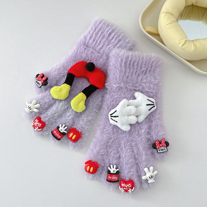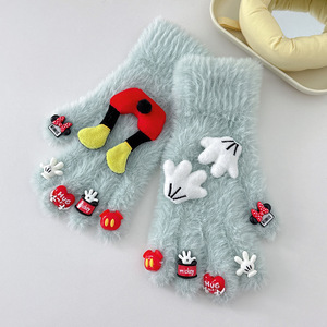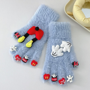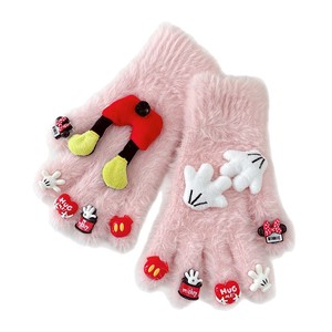 卡通米奇玩偶配件水钻水貂毛手套可爱保暖防寒针织分指骑行手套女
