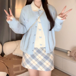 大码女装胖mm秋冬季新款设计感假两件刺绣毛衣翻领宽松显瘦上衣