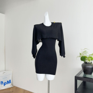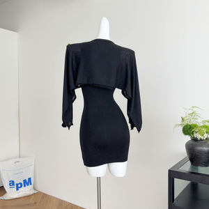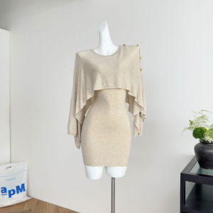 塞纳J2025秋季新款不规则斗篷披肩假两件修身吊带针织裙