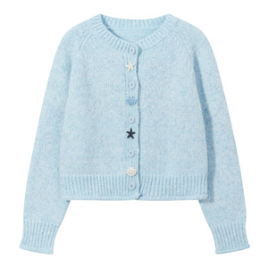 羊城故事 蓝色慵懒风软糯毛衣外套女2025秋季内搭宽松针织开衫