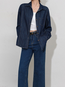 韩系复古丹宁牛仔衬衫女2025秋新款设计感小众慵懒宽松休闲外套